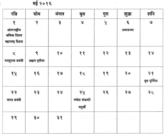 एक महीने की दिनदर्शिका बनाओ और विशेष दिन बताओ: