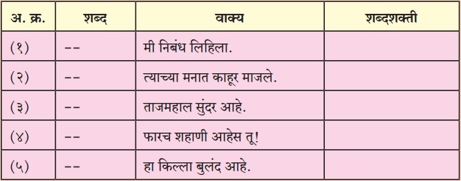 (इ) शब्दशक्तीनुसार तक्ता पूर्ण करा.