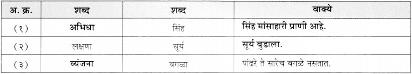 (आ) शब्दशक्तीनुसार शब्द व वाक्य लिहा.