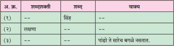 (इ) शब्दशक्तीनुसार तक्ता पूर्ण करा.