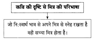 • अध्यापकः सच ही कहा गया है कि विपत्ति में ही सच्चे मित्र की पहचान होती है। बच्चों हमें अपना तन-मन-धन न्योछावर करके अपने मित्रों की संकट की घड़ी में सहायता करनी चाहिए और यही सच्चे मित्र का लक्षण हैं।