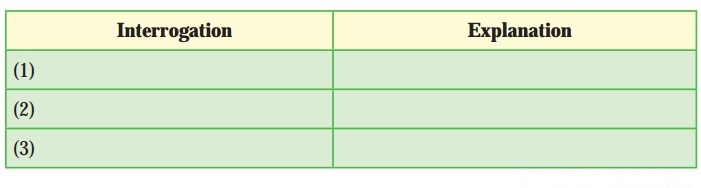 Pick out two examples of interrogation (rhetorical questions) from the extract. Explain in your own words the point that each one makes.