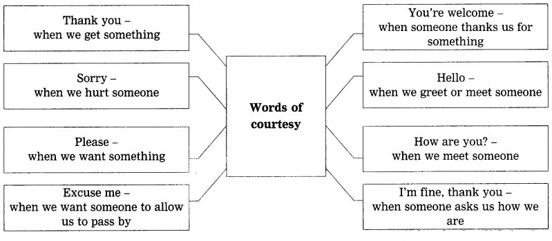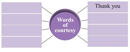 List the words of courtesy that we use in our daily life. Discuss them with your partner and explain the purpose of using each.