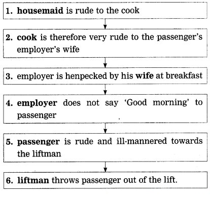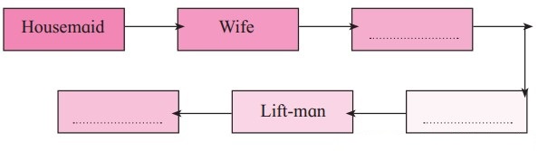 [housemaid] → [cook] → [employer’s wife] → [employer] → [passenger] → [lift-man]