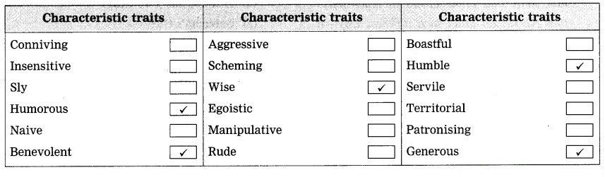 Listed below are a few character traits of people. Some are positive traits, while others are not. Tick [✓] the ones you feel are desirable.