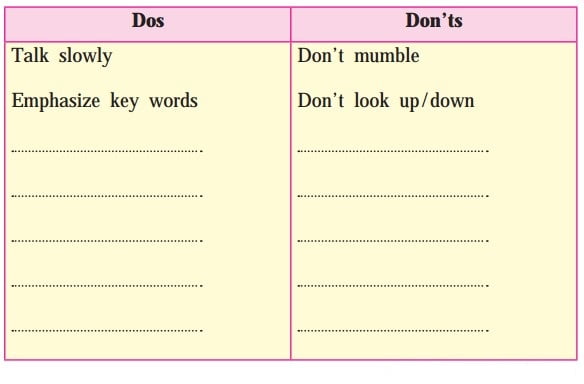 Points: Understand the given topic for the speech – Collect all information from all sources – put your thoughts, ideas clearly, systematically in correct sequence – use good but – simple and impressive language – use slogans, quotes, maxims, proverbs, etc. – give examples to justify your points of view – emphasize your good points – conclude with thanks.