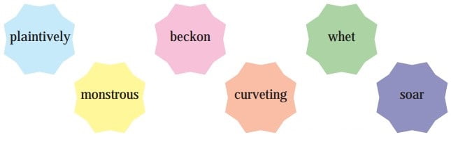 (afraid, plunged, appeared, shrilly, skimmed, devoured, cowardice)
