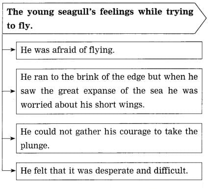 (a) the seagull is afraid to fly because he thought that his small, short wings would never support him to fly and he would fall and drown in the sea.