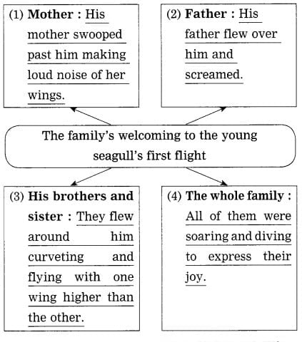 (b) The young seagull’s parents guided and improved his siblings in the art of flying.