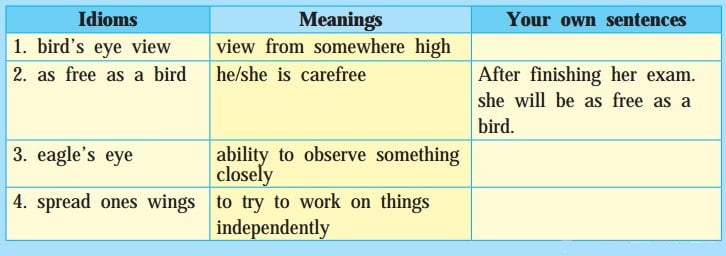 (Note: Students may collect more such idioms and their meanings from good dictionary.)