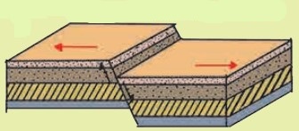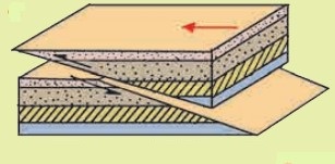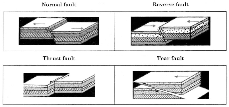Tear fault: At times, the rock strata on either side of the fault plane do not have vertical displacement. Instead, movement occurs along the plane in horizontal direction.