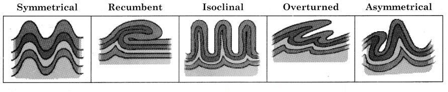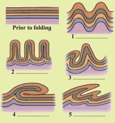 Observe the diagrams in fig. 1.5. Try to understand the different types of fold shown in the diagram. Write the name of the fold. (Textbook Page No. 4)