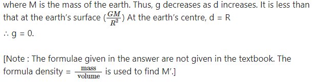 We shall treat the earth as a sphere of uniform density. If we consider a particle of mass m at point P at a distance (R – d) from the earth’s centre, where R is the radius of the earth and d is the depth below the earth’s surface, the gravitational force on the particle due to the earth is