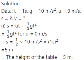 (e) A ball falls off a table and reaches the ground in 1 s. Assuming g = 10 m/s2, calculate its speed on reaching the ground and the height of the table.