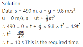 A metal ball of mass 5 kg falls from a height of 490 m. How much time will it take to reach the ground? (g = 9.8 m/s2) (March 2019)