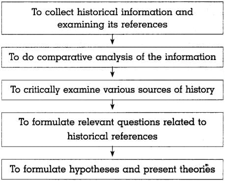 1. The writing of critical historical narrative is called Historiography. A person who writes it is known as ‘Historian’. The following steps are helpful in writing historical narrative: