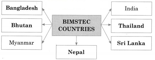 (iv) BIMSTEC – is a regional organisation founded in 1997 comprising of 7 member countries lying around Bay of Bengal for e.g. Bangladesh, India, Thailand, Myanmar. It aims to facilitate collaboration in economic, security and other concerns between member States.