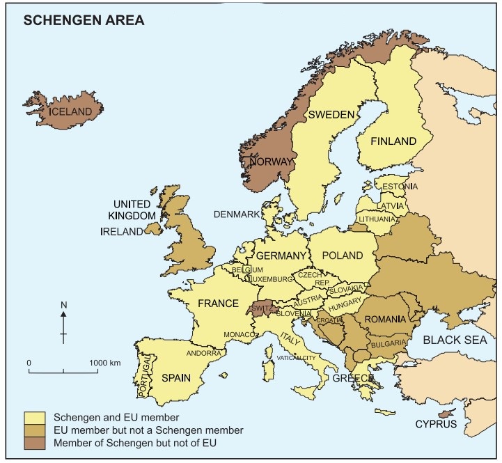 (i) European Union (EU) was created in 1992 by Maastricht Treaty. It led to increased spheres of cooperation between European nations e.g. foreign affairs, defense, trade and creation of Euro as a common currency. Creation of Schengen Area is one of the achievements of the EU since the Schengen visa allows eligible individuals to travel freely within the 26 nations of the Schengen area.
