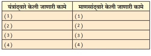 यंत्राद्वारे केली जाणारी कामे | माणसांद्वारे केली जाणारी कामे |