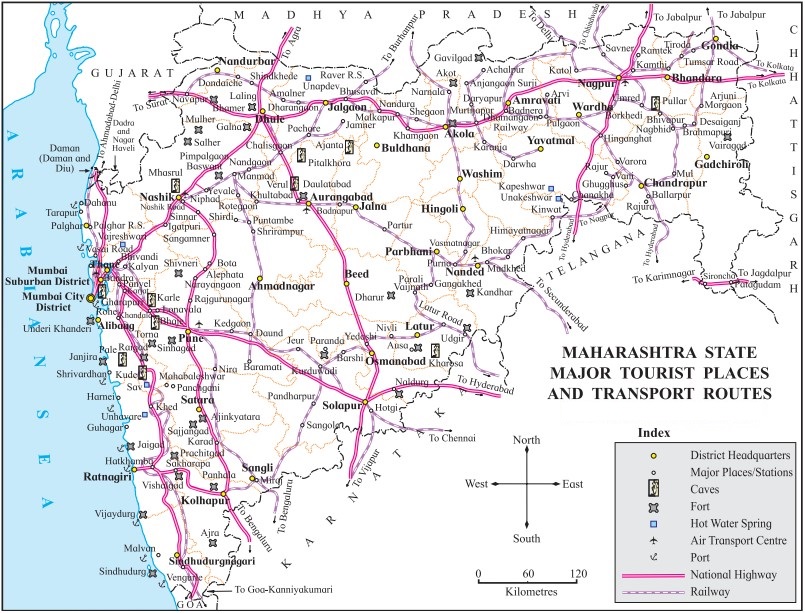 The tourism map of Maharashtra is given below. Answer the following questions based on the map: