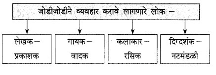 2. लेखक आणि प्रकाशक गायक वादक कलाकार रसिक दिग्दर्शक आणि नटमंडळी ही जोडीजोडीने काम करीत असतात