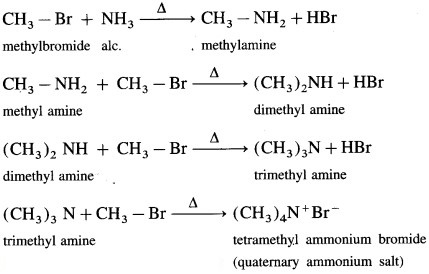 In the laboratory, ammonolysis of alkyl halides is not a suitable method to prepare primary amines as it gives a mixture of primary, secondary, tertiary amines and quaternary ammonium salts. (Refer to the reaction in answer to Question 16). The separation of primary amine becomes difficult.
