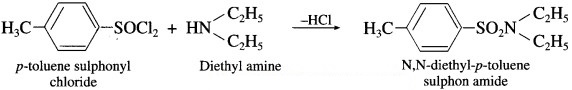 Write reaction of p-toluenesulfonyl chloride with diethylamine.