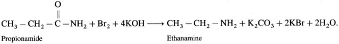 Propanamide (CH3 – CH2 – CONH2) produces ethanamine by Hofmann bromamide degradation reaction.