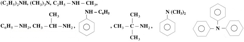 NH3, CH3 – NH2, (CH3)2 NH, C6H5NH2