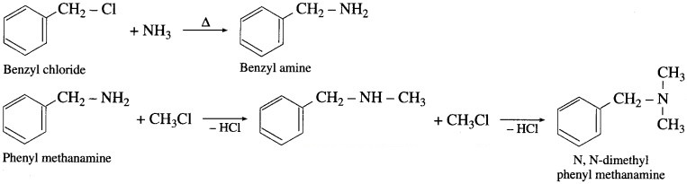 (ii) Amonolysis of benzyl chloride followed by the reaction with 2 moles of CH3I.