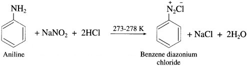 Aryl amines react with nitrous acid in cold condition (273 – 278 K) forms arene diazonium salts. The conversion of primary aromatic amine into diazonium salts is called diazotisation.