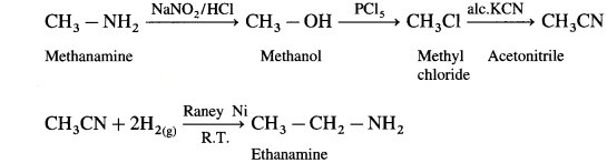 Methyl bromide can be converted into ethyl amine in two stage reaction sequence as shown below.