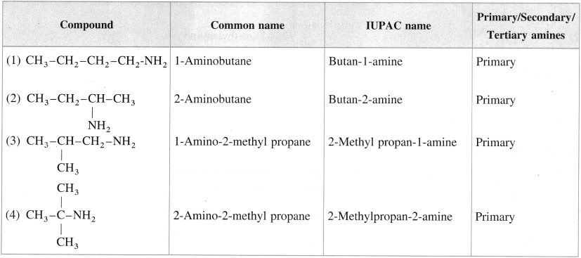 The common name of a primary amine is obtained by writing the name of the alkyl group followed by the word ‘amine’.