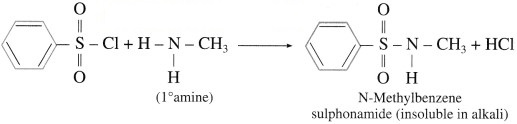 (1) Methyl amine (primary amine) reacts with benzene sulphonyl chloride to form N-methylbenzene sulphona- mide
