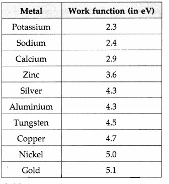 [ Note : W0 = hv0, where h is Planck’s constant. The larger the work function (W0), the higher is the threshold frequency (v0). ]
