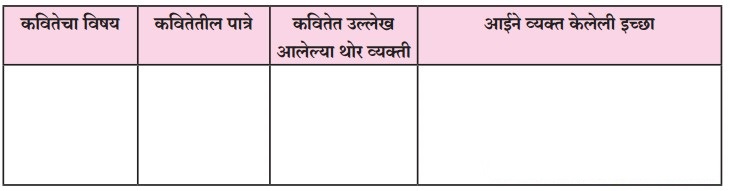 कवितेच्या आधारे पुढील तक्ता पूर्ण करा:
