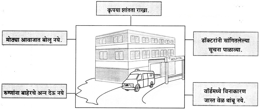 दवाखान्याचा ठिकाणी असलेल्या सुचनांच्या पाट्या तयार करा.