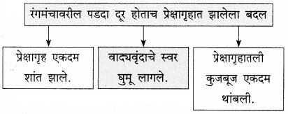 2. प्रेक्षागृहात वादयवृंदाचे स्वर घुमू लागले. | 2. सारे थिएटर त्या स्वरांनी भरून गेले. |
