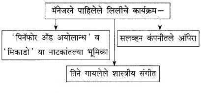 2. लिली रंगमंचावर उभी राहिली की, मॅनेजर निर्धास्तपणे दुसरीकडे बघायला मोकळा असे.