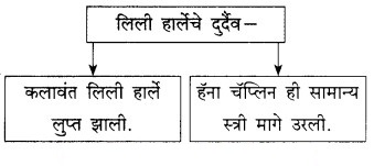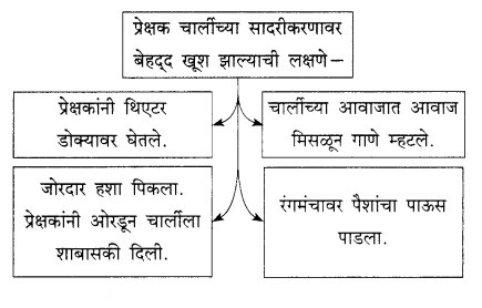 3. प्रेक्षागृहातील आरोळ्या स्टेज मॅनेजरने ऐकल्या. | 3. स्टेज मॅनेजर धावतपळत आला आणि विंगेत. चार्लीच्या शेजारी उभा राहिला. गोंधळून जाऊन लिलीकडे बघत राहिला. |