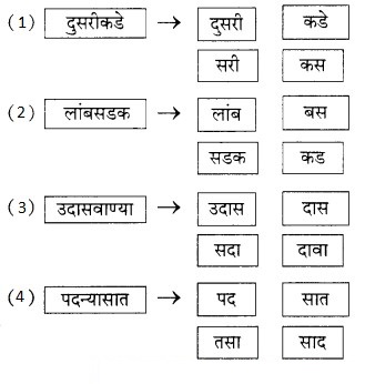 पुढील शब्दात लपलेले प्रत्येकी चार अर्थपूर्ण शब्द लिहा:
