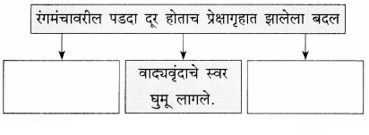 2. प्रेक्षागृहात वादयवृंदाचे स्वर घुमू लागले. | 2. सारे थिएटर त्या स्वरांनी भरून गेले. |