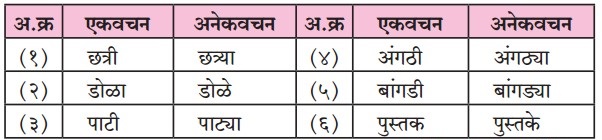 - अनेकवचन – जेव्हा आपण अनेक वस्तूंबद्दल बोलतो तेव्हा ते अनेकवचन असते.