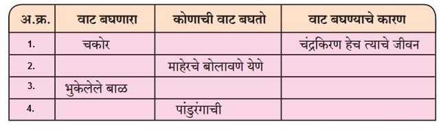 समान अर्थाच्या काव्यपंक्ती शोधून लिहा.