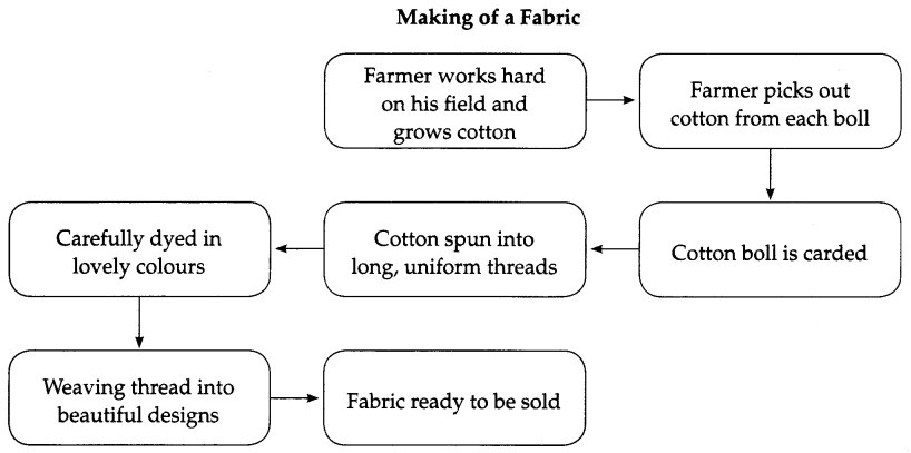 3. Read aloud the speech in which Thiruvalluvar explains how the fabric was made. Present the process in the form of a chart. Draw pictures for the churl and label them.