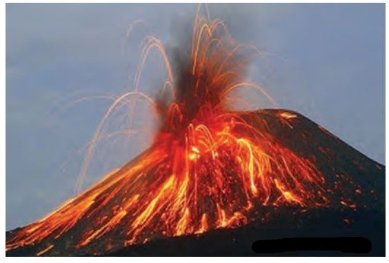 1. Draw a diagram to show a volcanic eruption from its description given in this passage. Label the diagram. Show the following in it: Volcano; earth’s crust; crack in the earth’s crust; hot molten rock; red, hot lava; smoke; ash; burning chunks of rock.