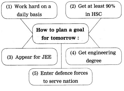 Prepare a mind map on ‘How to plan a goal for tomorrow’ or ‘My future goal’. Take the help of points given in ‘Writing Skills Section’ for preparing a mind map.