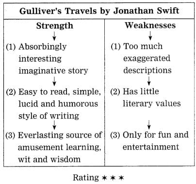 You have recently read a short story/novel/drama/science fìctionlghost-story. Write in short 3 of its strong points that made you like the book and 2 or 3 drawbacks it has. Fill them up in the tree – diagram given.