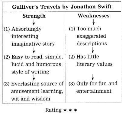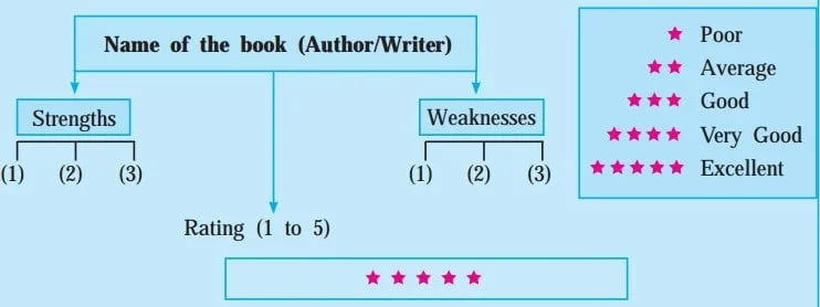 You have recently read a short story/novel/drama/science fìctionlghost-story. Write in short 3 of its strong points that made you like the book and 2 or 3 drawbacks it has. Fill them up in the tree – diagram given.