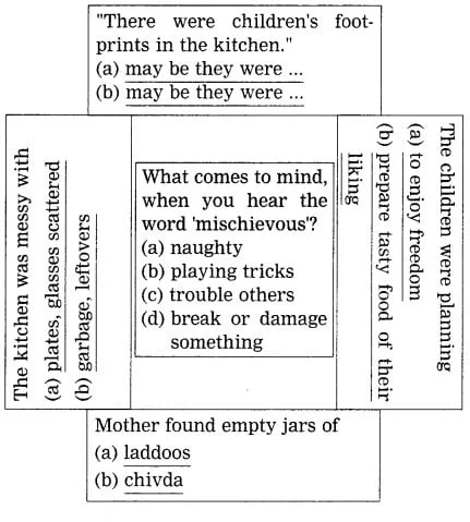 We called Chintu but he said he was at uncle’s house all the time. First we began to clear the mess. Mother lifted some tins and jars lying there and to her surprise the laddoos and chivda kept in them had vanished, gone! Who could it be and what the thieves must have taken away. But all other cupboards were intact.